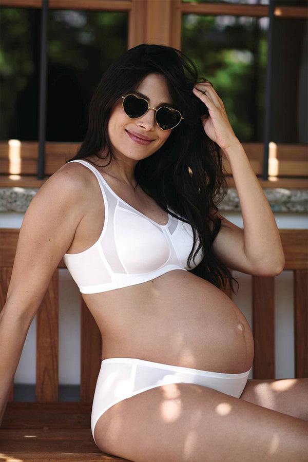 Clean simple design and highest comfort come together in pregnancy bra BASIC. The elasticated fabric not only provides a high level of support but also support to take pressure off aching breasts.