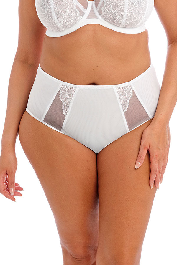 Complete your favourite Elomi lingerie look with the contemporary Brianna Full Brief, designed to offer full coverage without compromising on beauty. Sheer tulle side panels combine with gorgeous stretch lace, overlaid on the classic brief shape for romantic look.