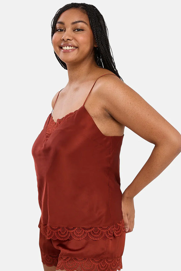 Wear it to bed or style it as a top; this silky satin camisole is as stylish as it is comfortable. Crafted from soft viscose satin and trimmed with scalloped lace, it features narrow shoulder straps which are adjustable to ensure a perfect fit.