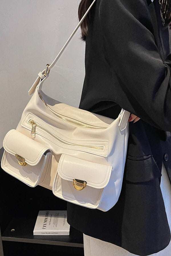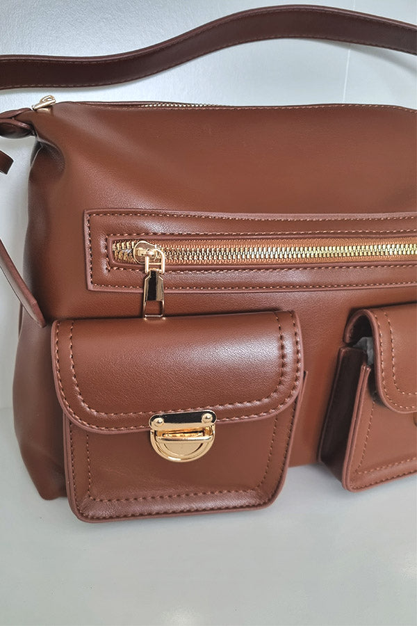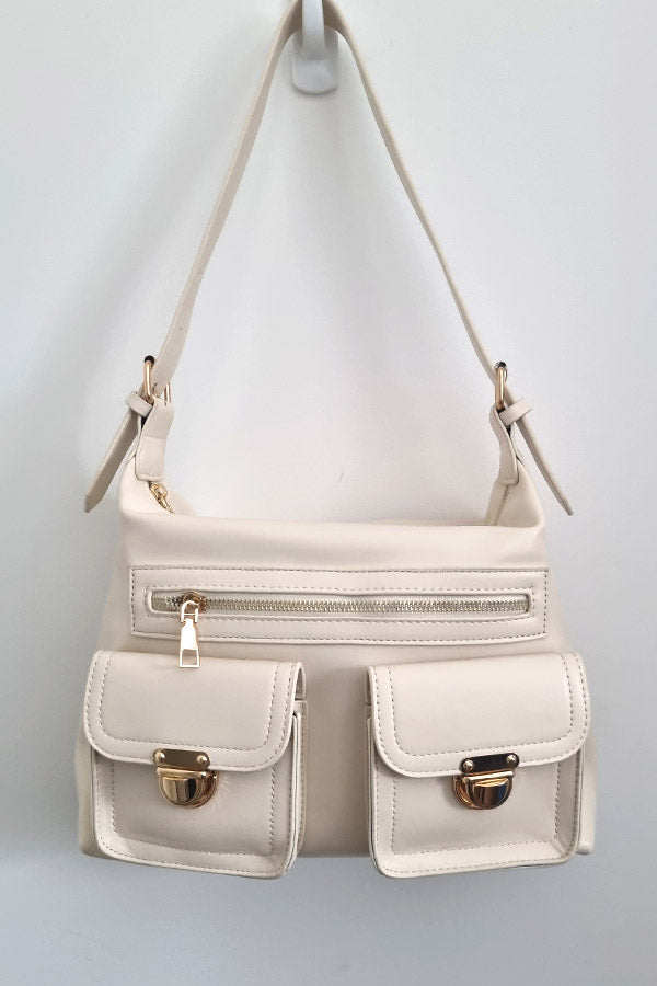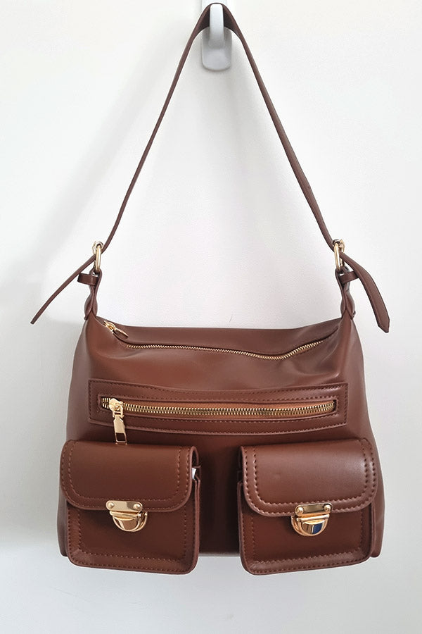Elevate your style with the new Eleanor Shoulder Bag. Crafted from durable leatherette, this elegant shoulder bag features a classic silhouette with a twist, featuring front pockets for your essentials.