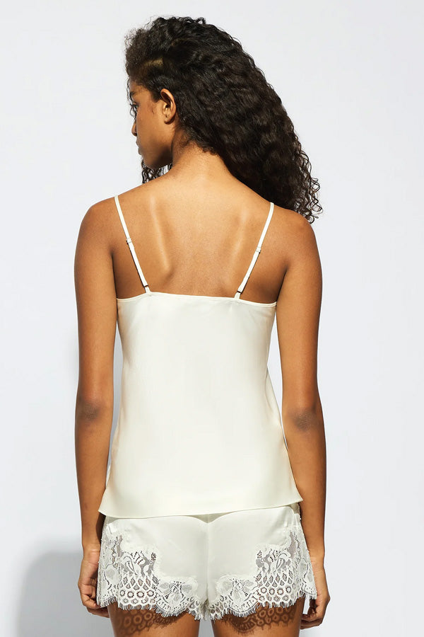 The adjustable spaghetti straps ensure a customised fit, while the fluid drape of the silk provides a soft, versatile silhouette. Perfect for year-round wear, this cami seamlessly transitions from day to night.