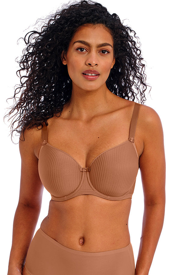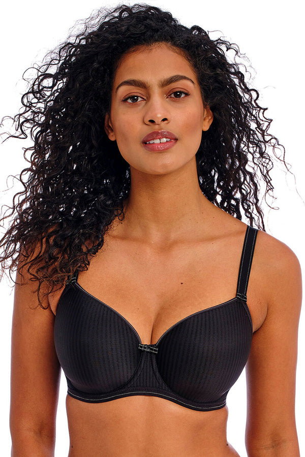 Freya's bestselling Idol Moulded Balcony Bra is a lingerie drawer essential showcasing a classic pin-stripe design now available in everyday colourways. Smooth, seam-free cups offer a flattering and natural shape with good coverage.