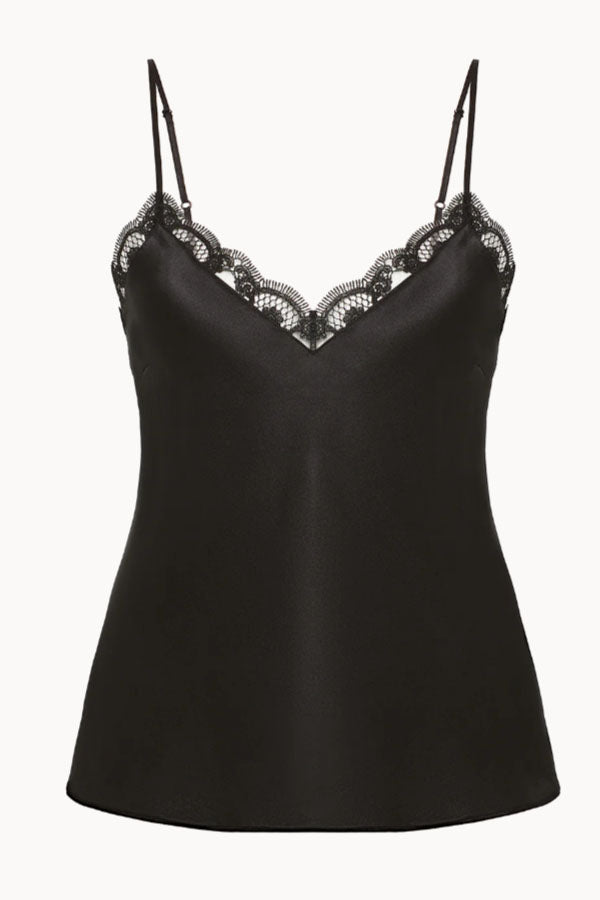 The Love Me Lace Camisole combines elegance and versatility with a refined, ready-to-wear design in 100% Silk. Its slight flared cut offers a relaxed yet flattering silhouette, while delicate embroidery enhances the neckline, elevating any outfit.
