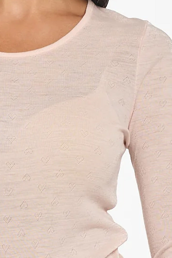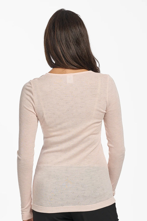This Baselayers Ultra Lightweight Pointelle Thermal Long Sleave is a soft warm blend of Australian Merino Wool and Bamboo, knitted with a pretty heart pointelle pattern. Designed with a scoop neckline and a sleek tank silhouette, this thermal layer slips effortlessly under any outfit to provide cozy warmth all day long.