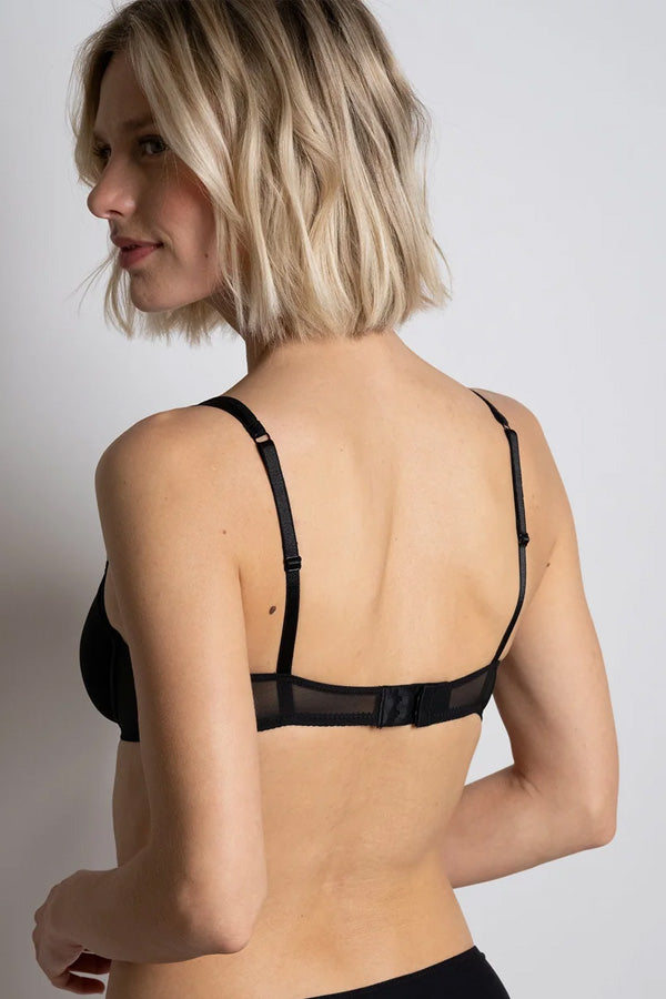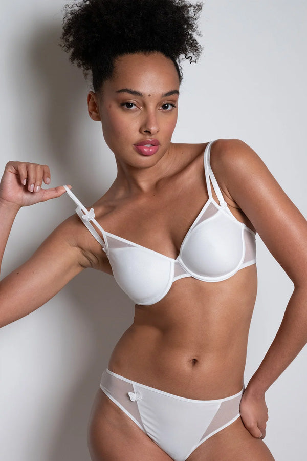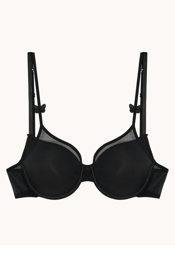 The ultimate blend of comfort and style, this design features lightweight spacer cups for a 'second skin' effect, plus a sheer tulle overlay that creates a chic, double strap bra look. The full cup bra shape is nicely supportive, and it's adorned with Passionata's signature butterfly details for a touch of whimsy.