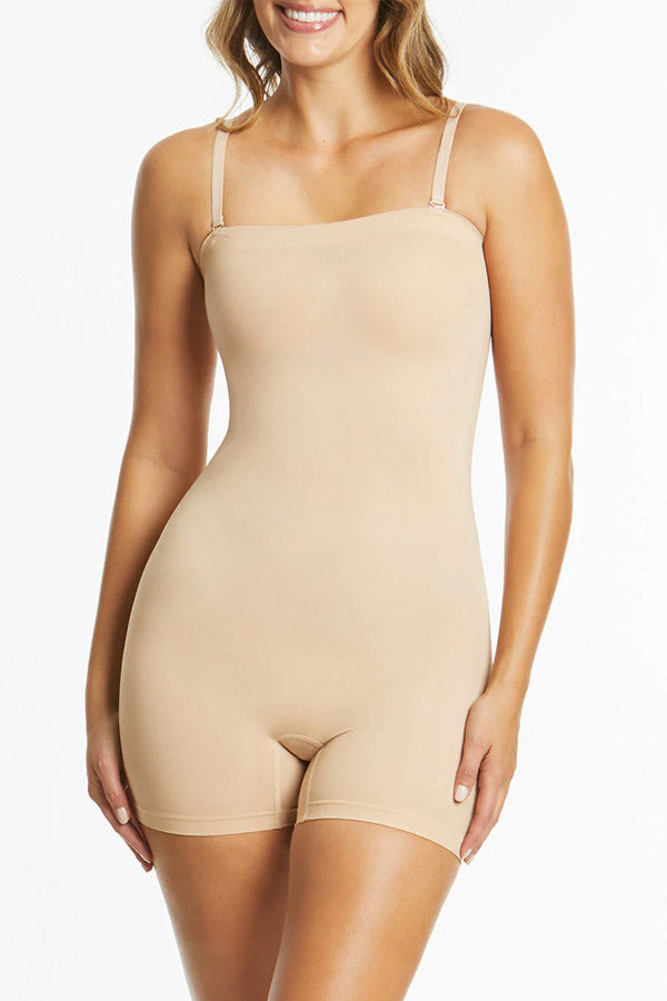 Ambra’s Powerlite Shapewear is smooth, comfortable, and powerfully light. The Bandeau Bodysuit is smoothing in all the right places whilst offering a medium level of seam free support. The knitted compression panels target the hips and tummy, offering an extra level of firmness and control. Designed in Australia, with everyday comfort in mind.