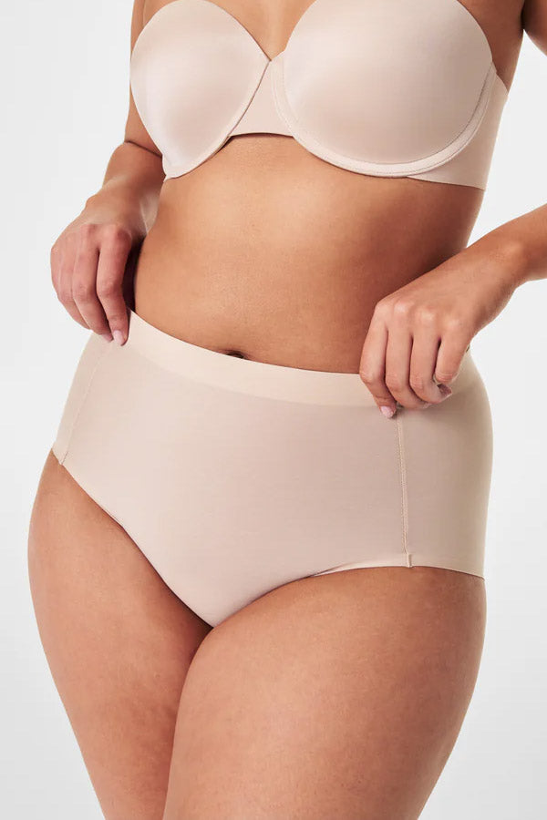 The shaping brief that has it all under control. This sheer style offers firm compression to your entire core, in a luxe fabric that’s quick-drying and breathable. Featuring bonded technology at the waist and legs to prevent digging and stay in place all day.