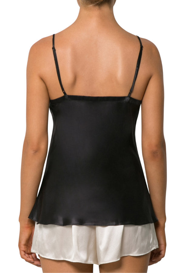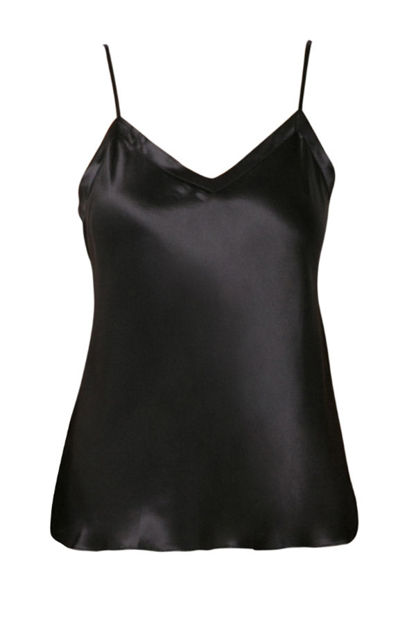 A beautiful premium quality silk cami that drapes over the figure gracefully. So comfortable to wear and ideal to sleep in. Features adjustable straps and a flattering v-shaped neckline.