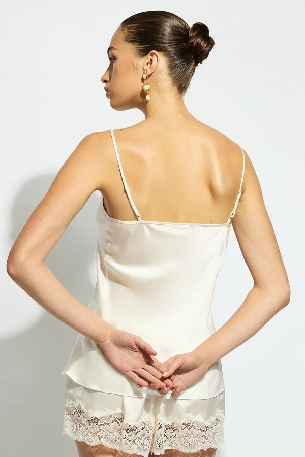 This Silk Cami is an enduring romance, made in soft silk and detailed with delicate hand-cut lace to celebrate the female form.